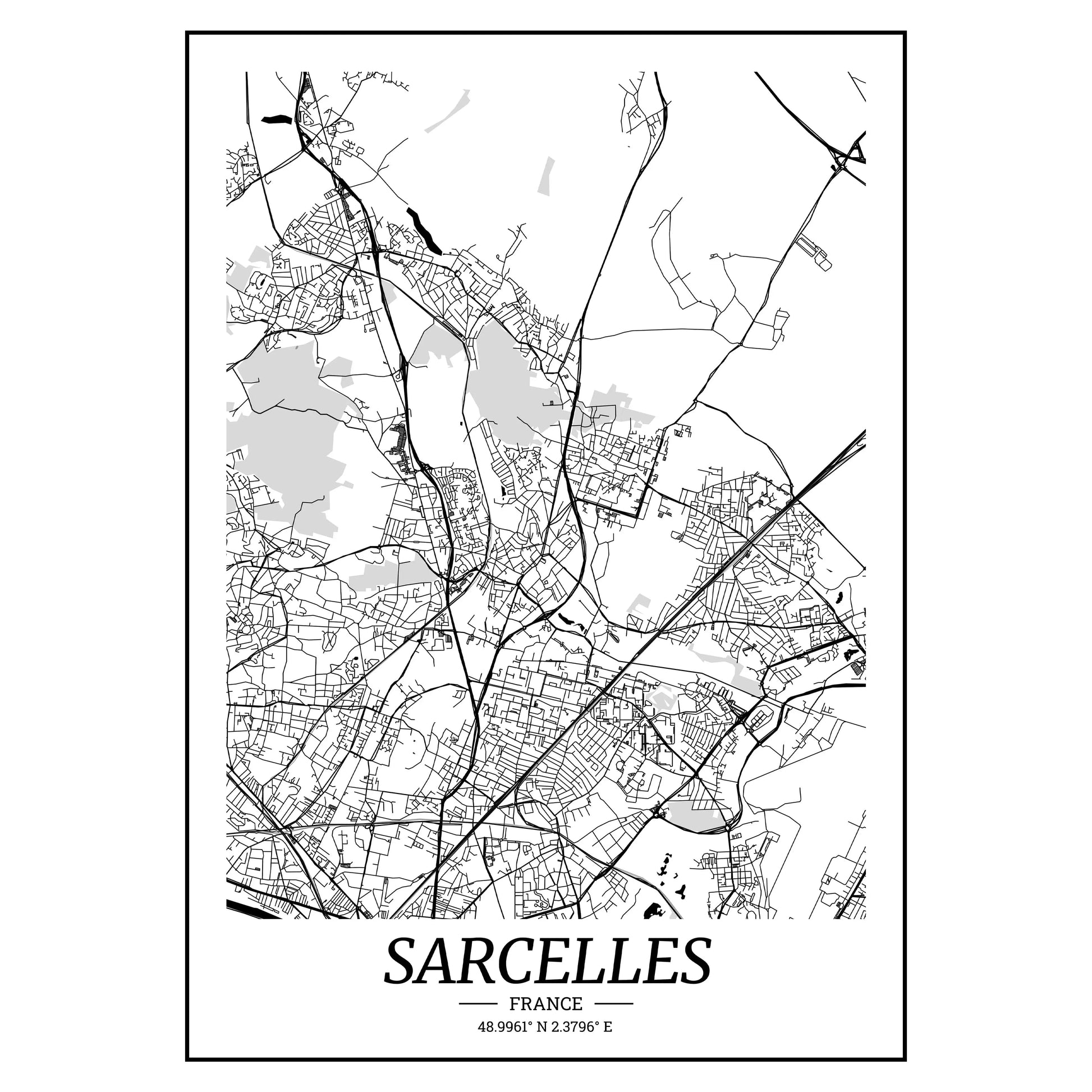 Apportez une touche urbaine à votre décoration murale avec cette magnifique affiche du plan de Sarcelles. Cette affiche Sarcelles, en noir et blanc, présente une vue détaillée et précise des rues de cette ville au nord de Paris. Célébrez votre attachement à Sarcelles en intégrant ce poster unique à votre intérieur !